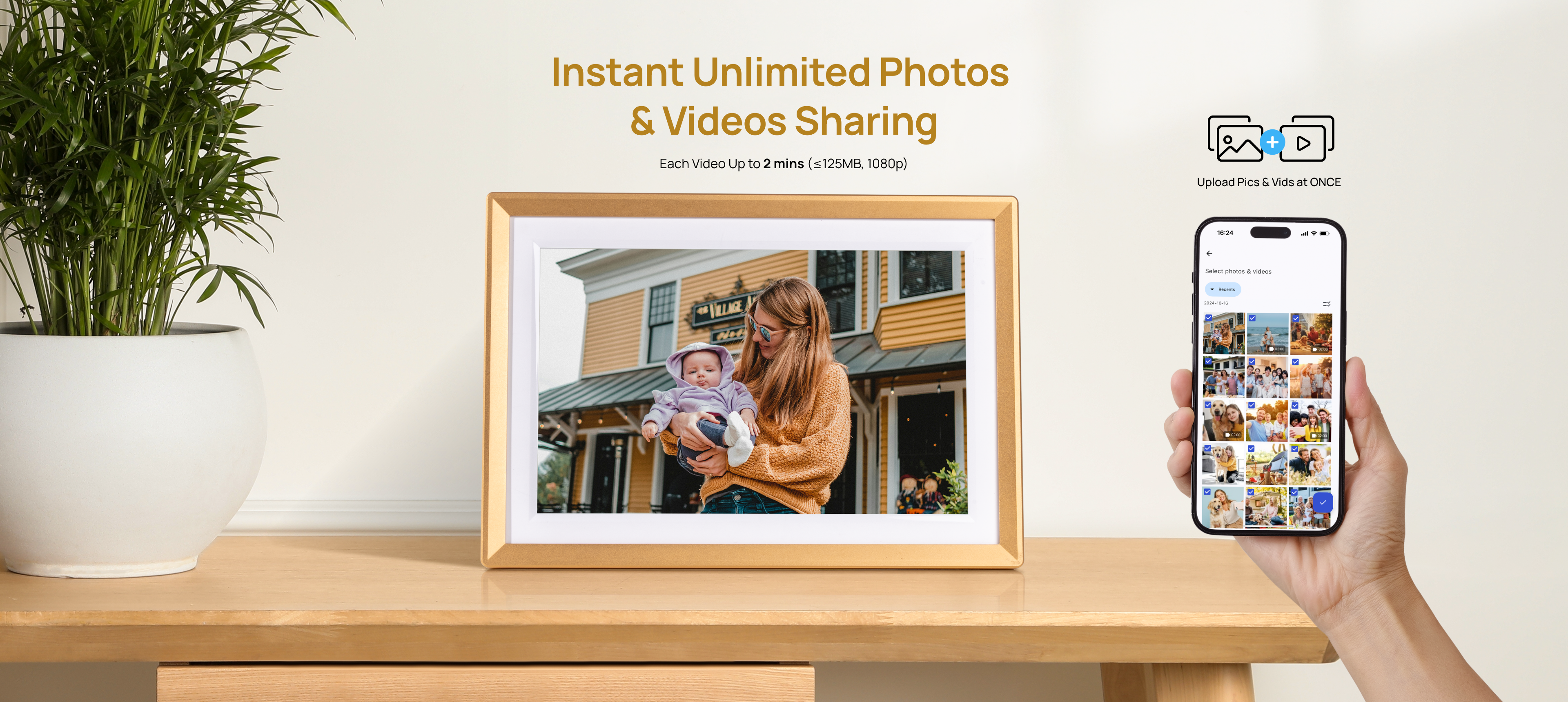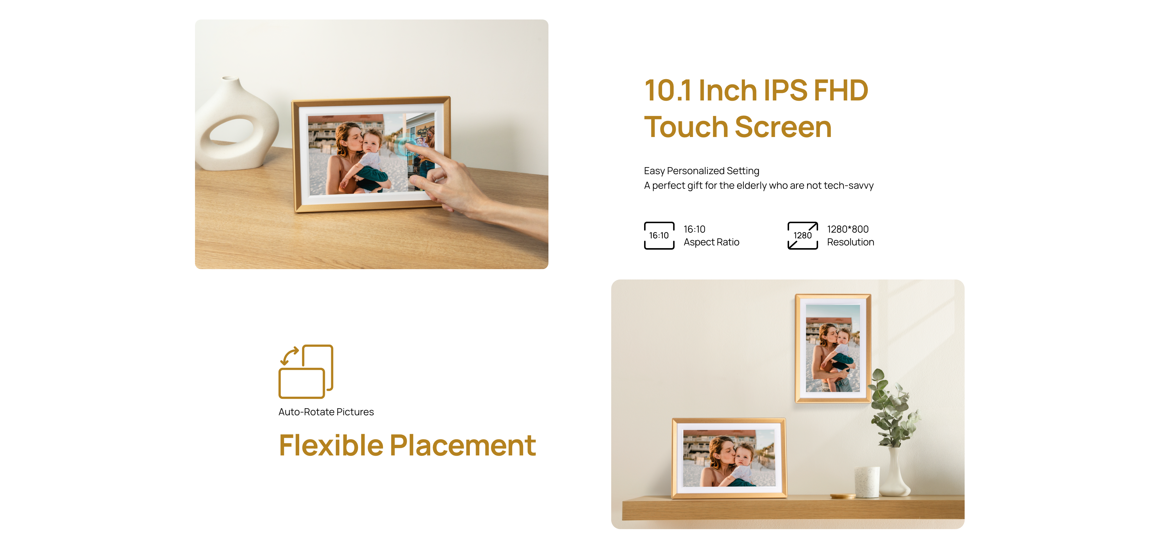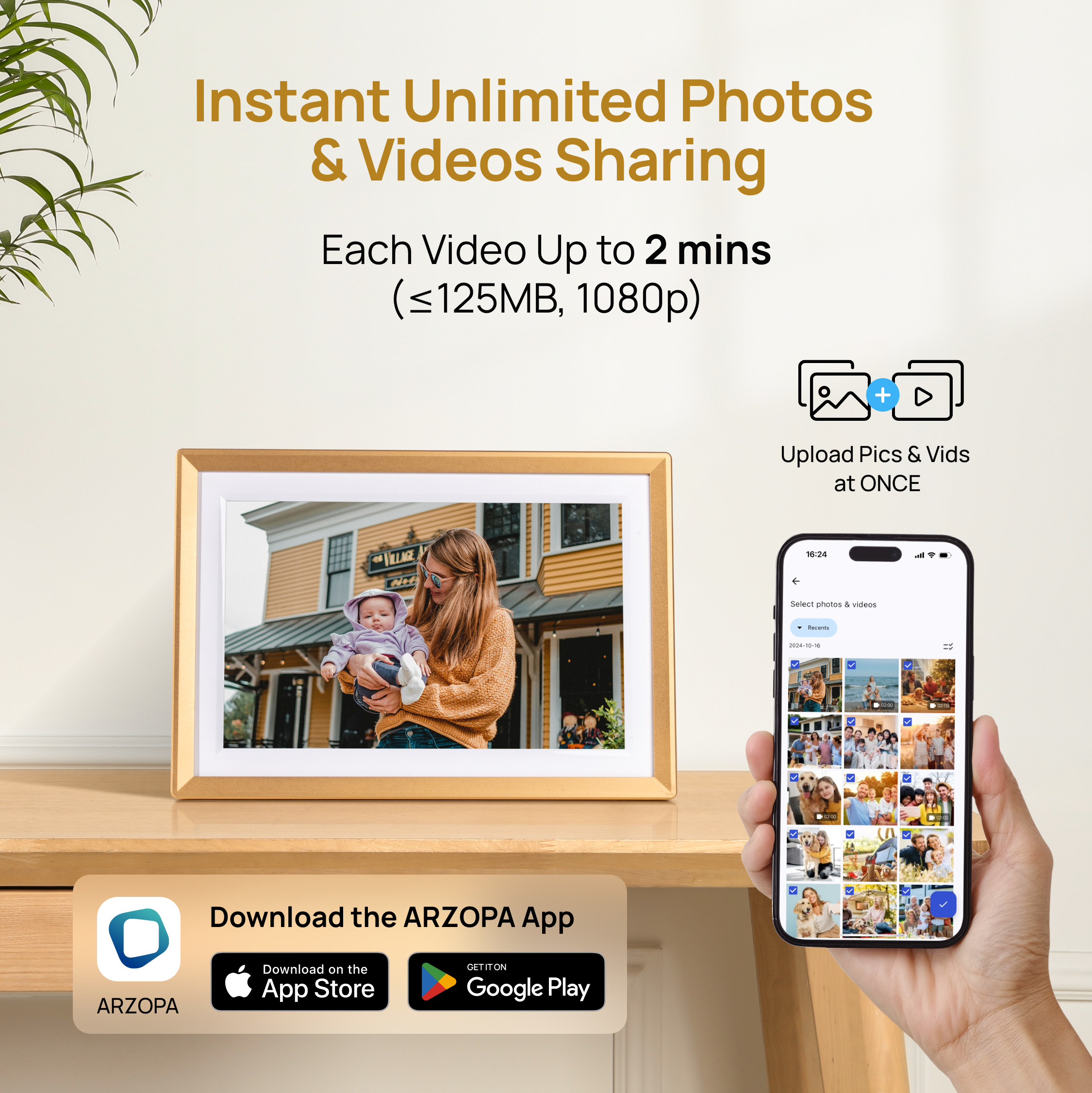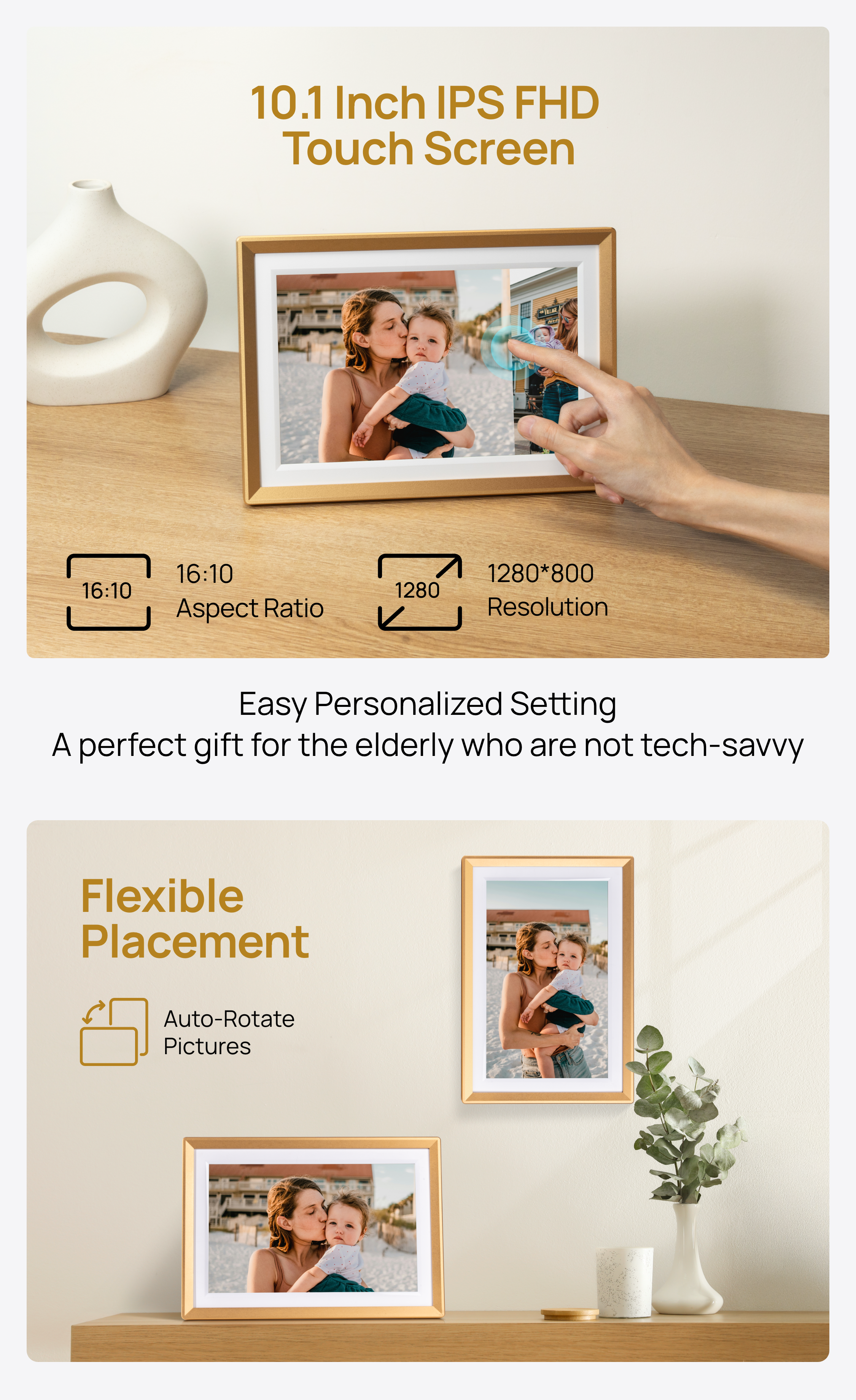 Arzopa D10 Champagne Gold Digital Photo Frame