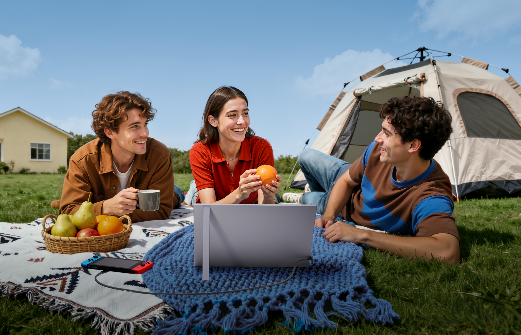 Unfazed by bright light, this portable 1080p monitor remains perfectly visible under tree shade or open sky.