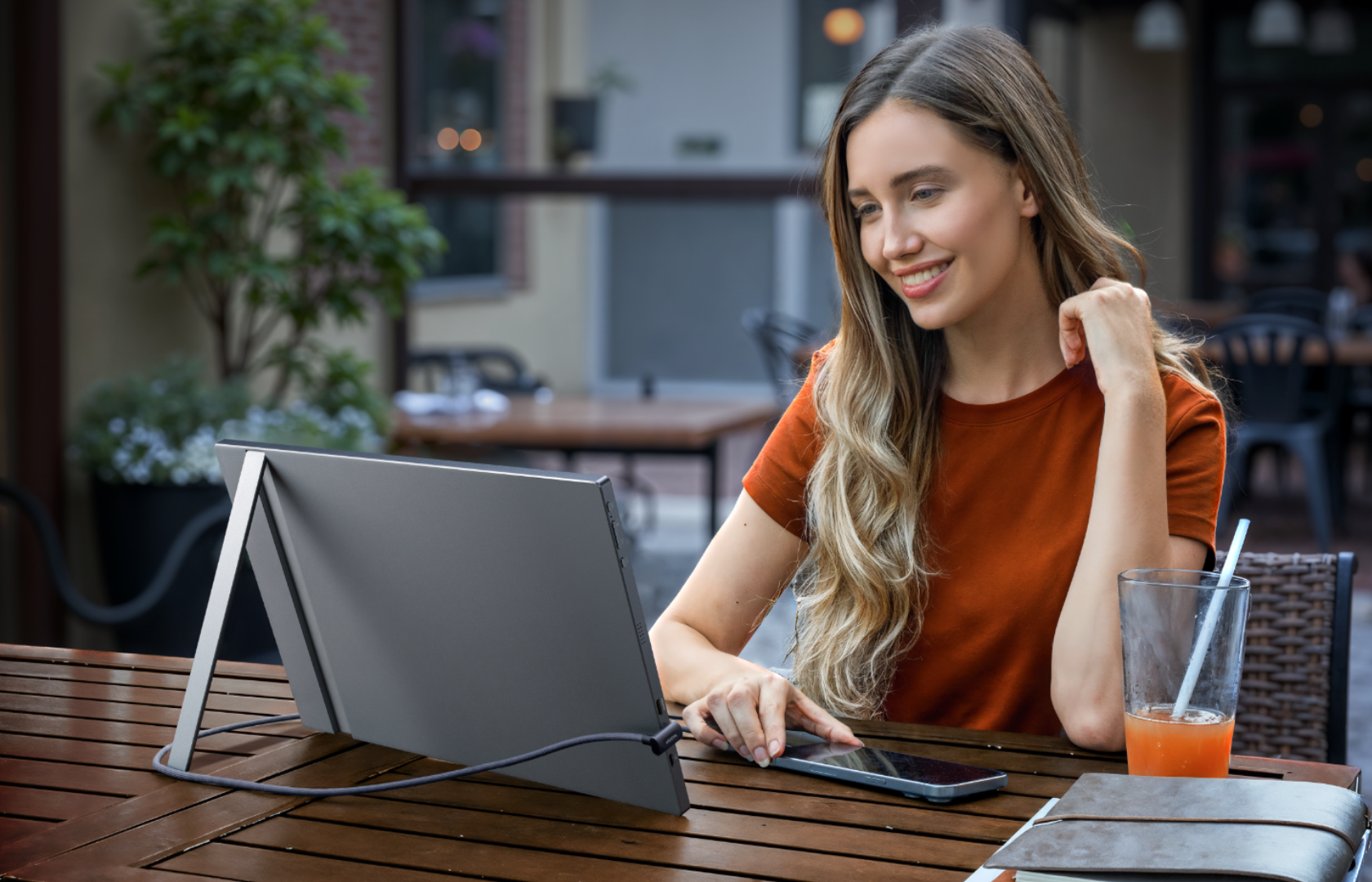 Take your travel monitor to cafés and bright spaces. The matte screen and 300‑nit brightness help keep content readable for documents, calls, and daily tasks