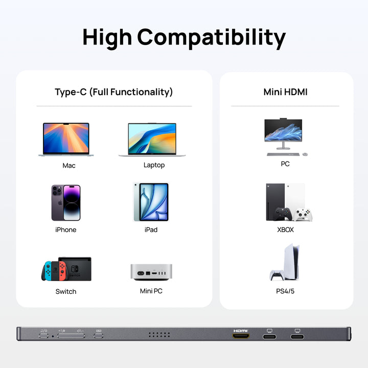 • Designed for easy travel, our portable monitor is lightweight and compact.