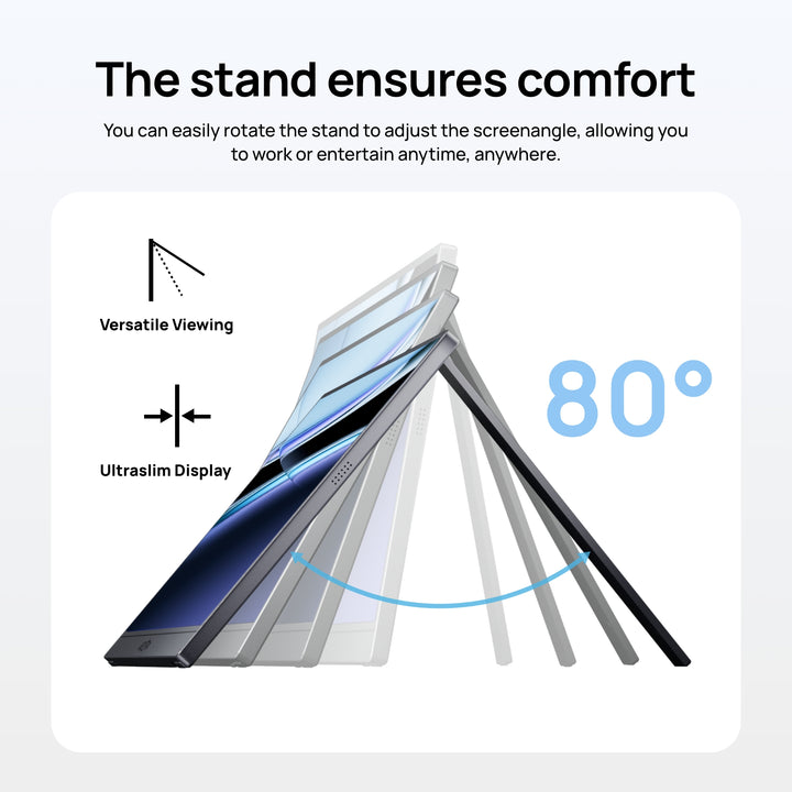 You can easily rotate the stand to adjust the screen angle, allowing you to work or entertain anytime, anywhere.